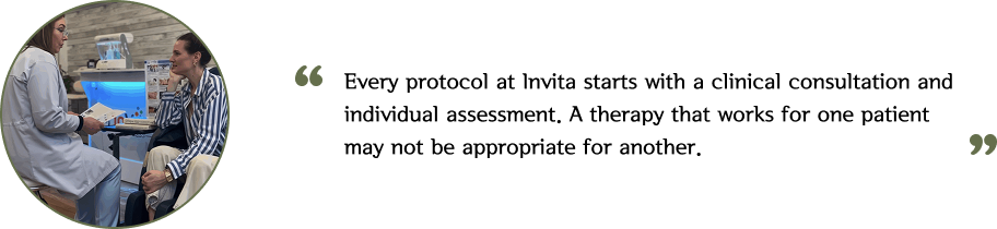 Every protocol at Invita starts with a clinical consultation and individual assessment. A therapy that works for one patient may not be appropriate for another.