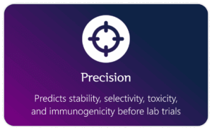 Before a peptide reaches the lab, AI can help to assess and optimize critical characteristics like a peptide’s stability, half-life, and immunogenicity, increasing the likelihood of the peptide’s success in clinical trials, and saving substantial amounts of time and money.